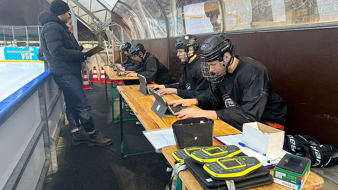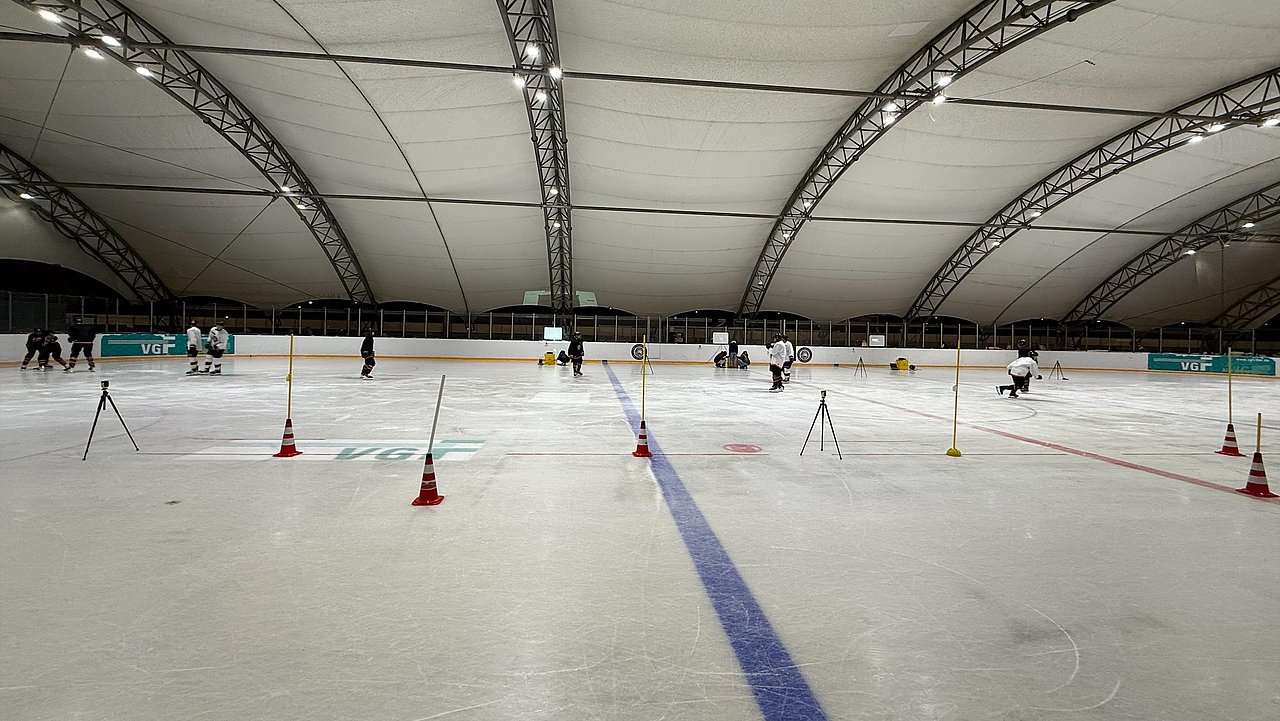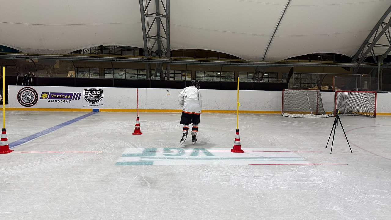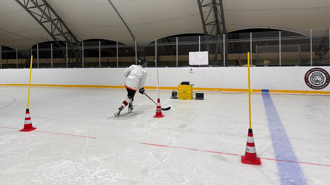 Im Rahmen der Testungen wurde die motorische Schnelligkeitsanforderung auf dem Eis mit der Entscheidungsfindung unter Zeitdruck kombiniert. Die Spieler reagierten zunächst am Computer auf Richtungsreize, bevor dieselbe Aufgabe mithilfe von am Schläger angebrachten Knöpfen auf dem Eis durchgeführt wurde. Ergänzt wurde dies durch einen intensiven Parcourslauf, bei dem die Athleten innerhalb eines festen Zeitfensters möglichst viele Runden absolvieren mussten, während ihr Blick dauerhaft auf einer Leinwand blieb. Abschließend wurden kognitive und motorische Anforderungen zu einer Doppelaufgabe verbunden, wodurch realitätsnahe Spielsituationen simuliert werden konnten, in denen schnelle Entscheidungen unter körperlicher Belastung gefordert sind.