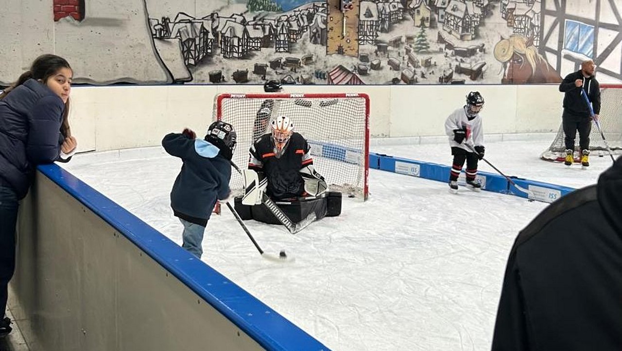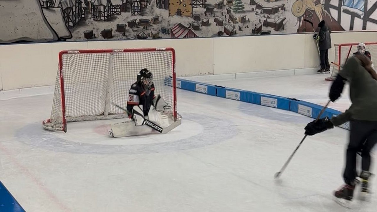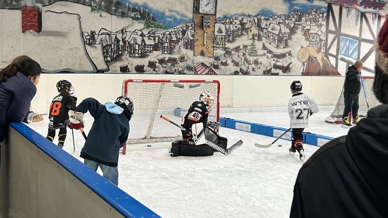 Mitten unter diesem waren auch wir. Den ganzen Tag fand in der kleinen Halle das Tor Schiessen statt. Inessa Turano und unser Trainerteam verteilten Schläger und Pucks und das Publikum hatte die Möglichkeit, selbst mal einen Penalty auf unsere Torhüter zu schiessen. Dabei möchten wir uns bei Elli, Collin und Jan Arne (alle U9) sowie Klara, Ben, Finn und Simon (alle U13) für ihren Einsatz im Tor bedanken. Neben dem Eis war wieder unser mobiler Informationsstand am Stand, an dem das Team um Inessa und unseren U11-Koordinator Dominik Auskunft über unseren Verein und Eishockey gaben. Auch Trevor, das Löwen-Maskottchen, und Kufi, das Eishallen-Maskottchen, ließen es sich nicht nehmen, einen Penalty zu schiessen.